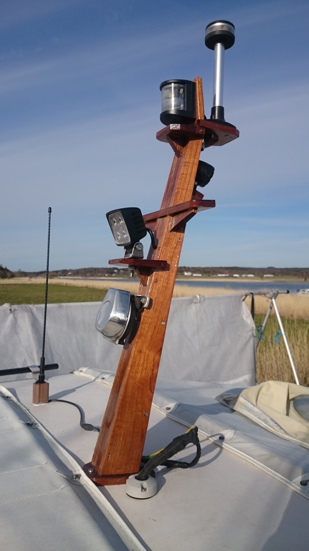 - Mast med 2 arbetsstrålkastare, topplanterna, ankarlanterna, signalhorn